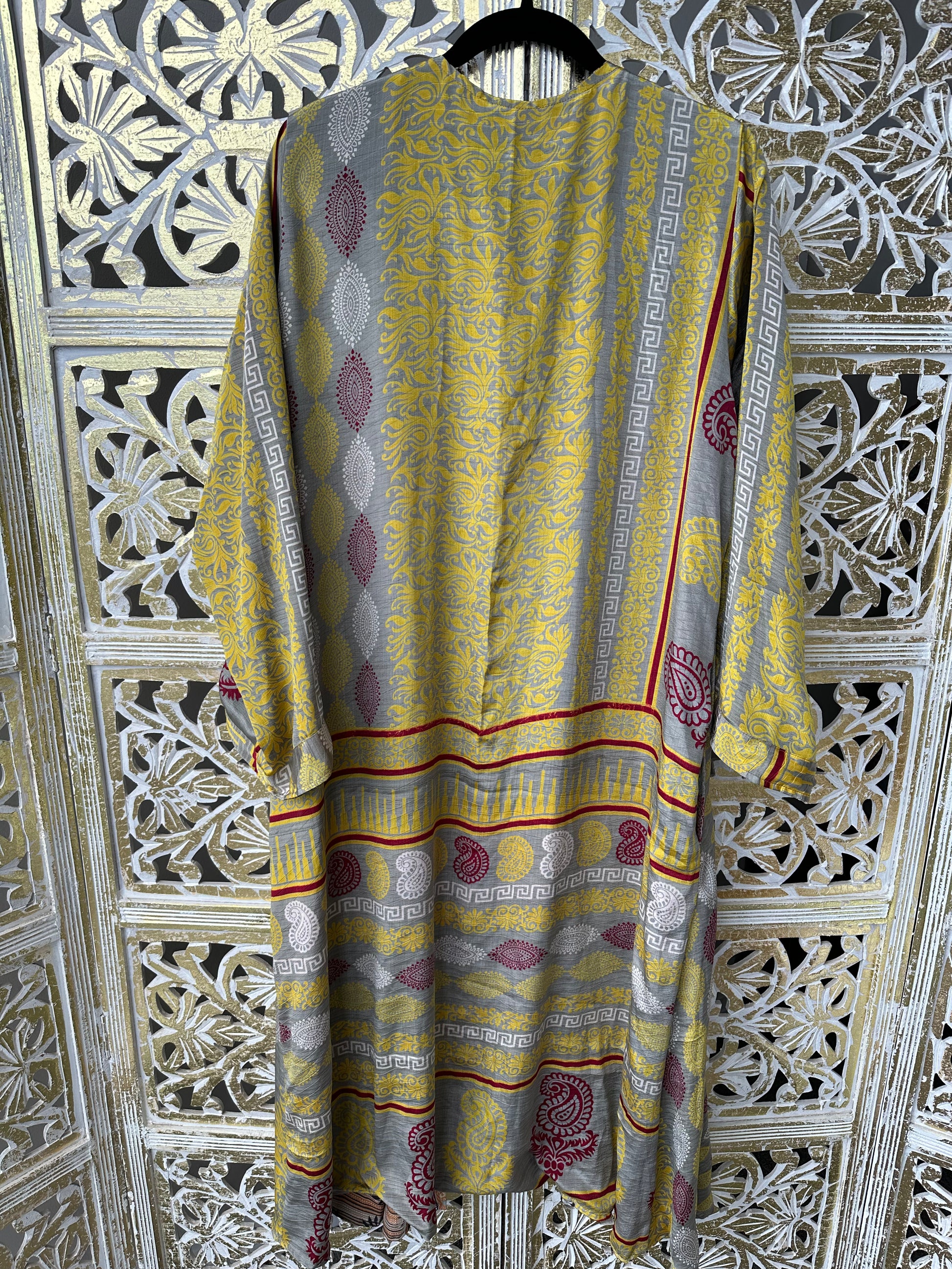 Silk Sari Double Sided Robe - Yellow/Orange & Grey