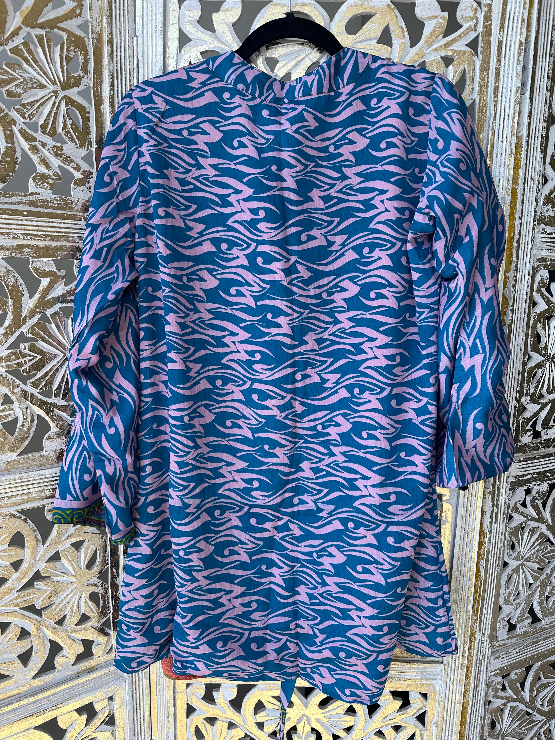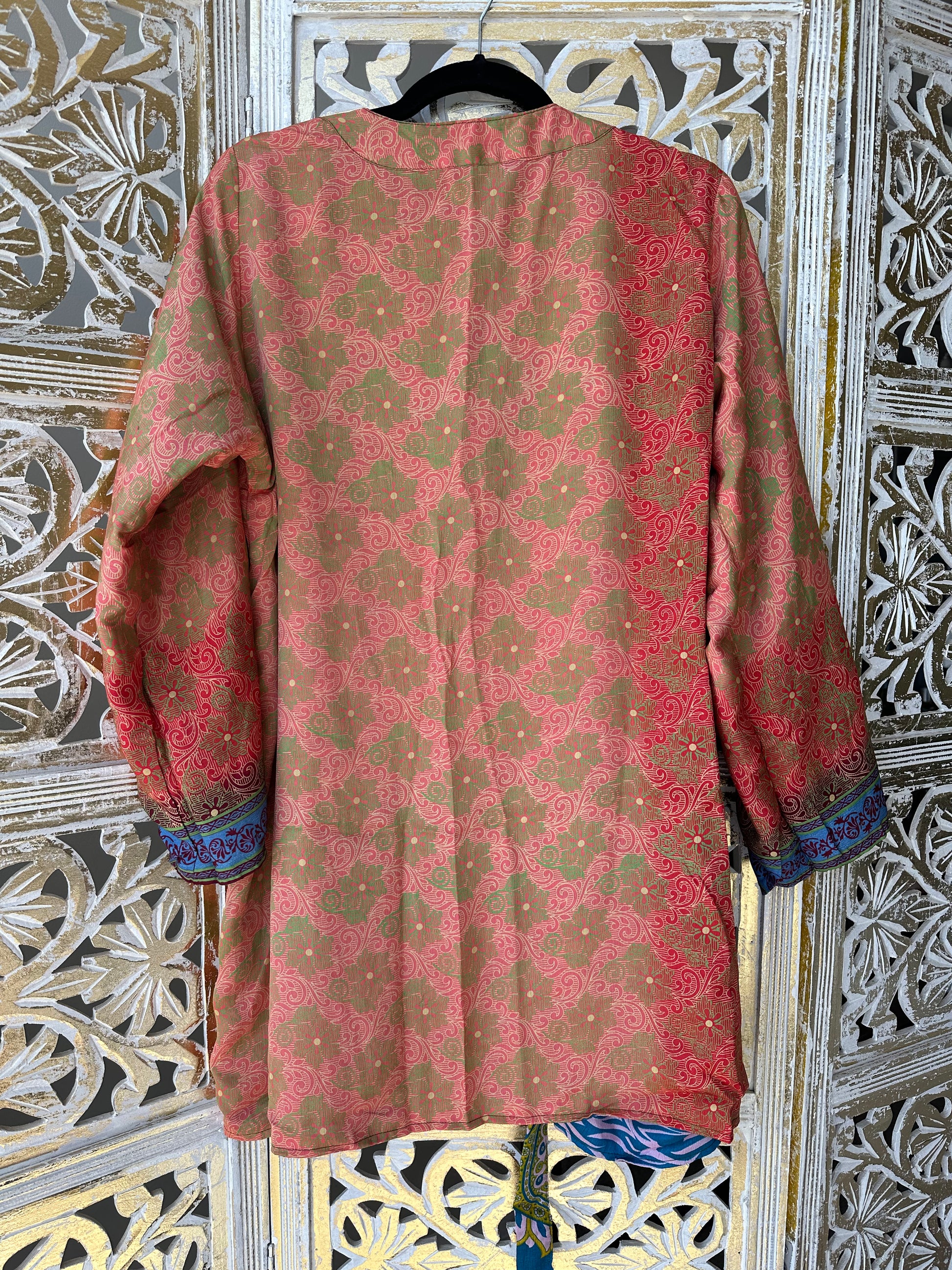 Short Silk Kimono Robe (reversible) - Peach & Blue