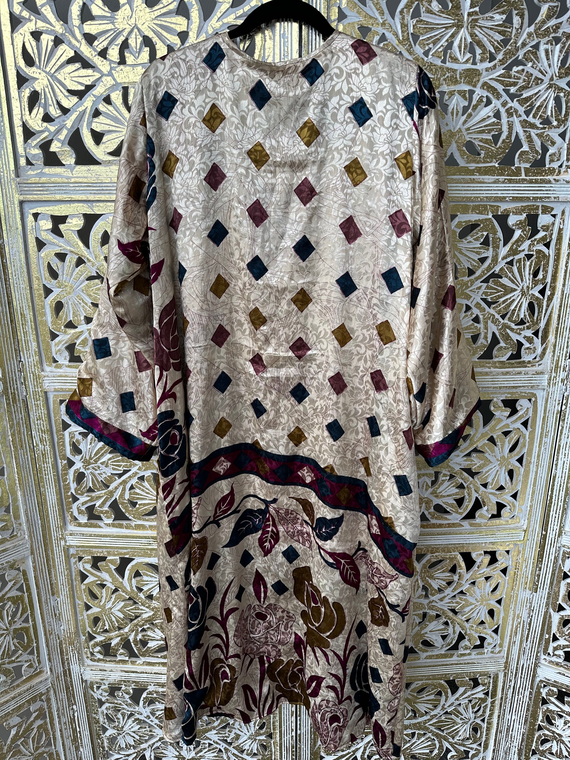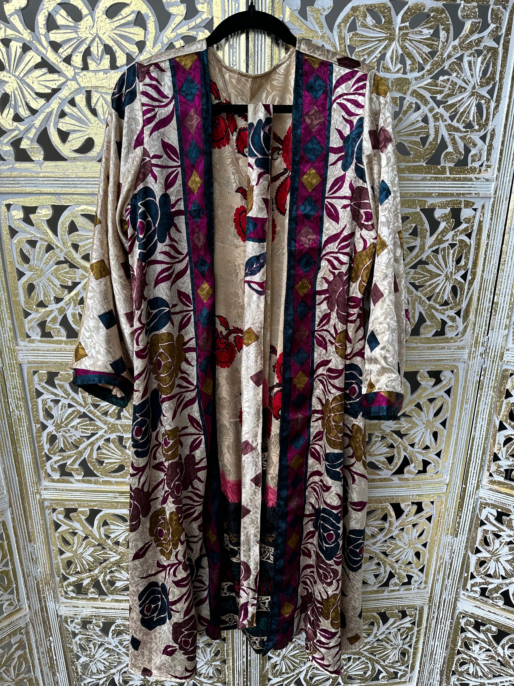 Silk Sari Double Sided Robe - Diamonds & Roses