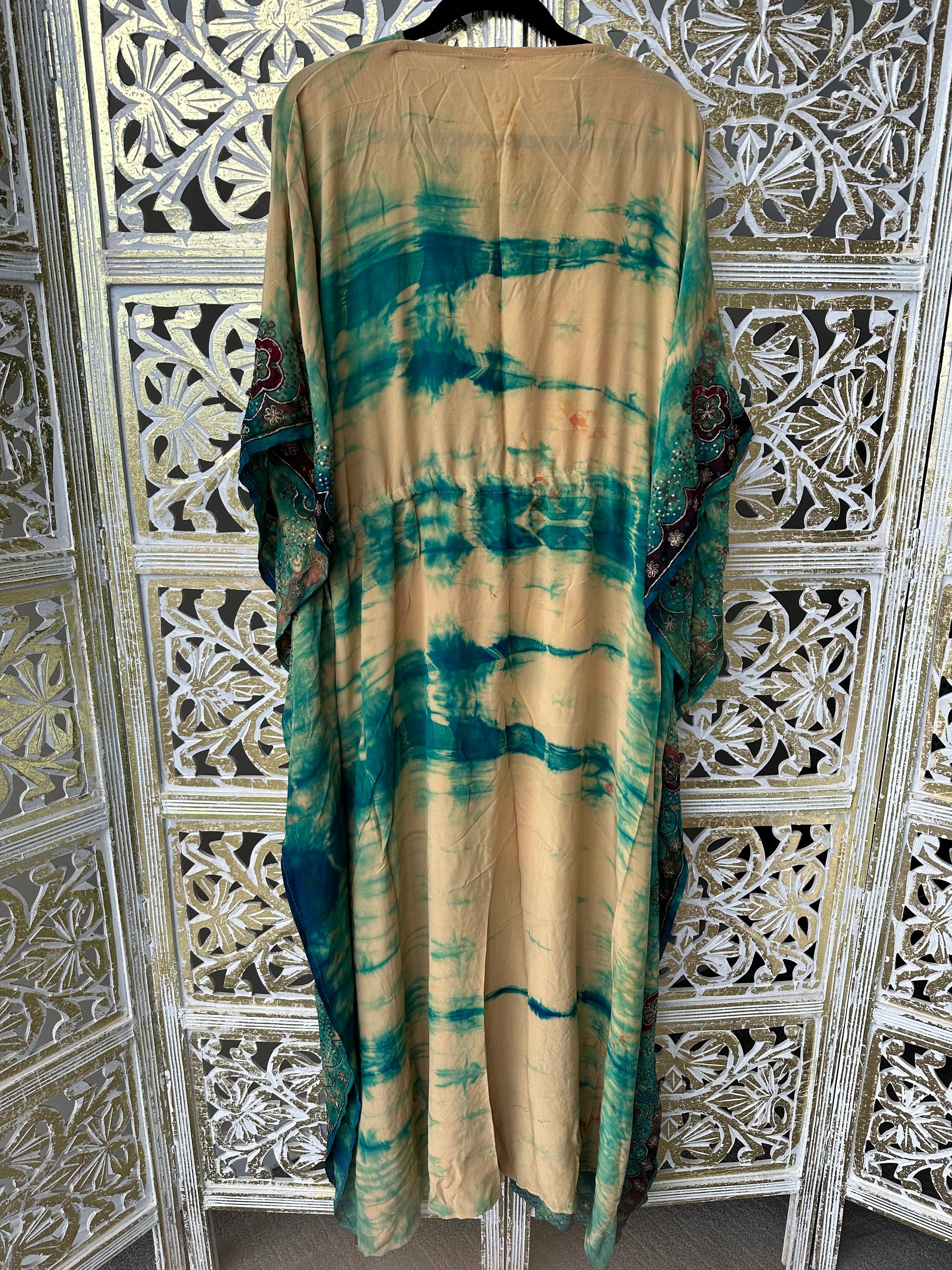 Silk Sari Muumuu - Green Tie Dye