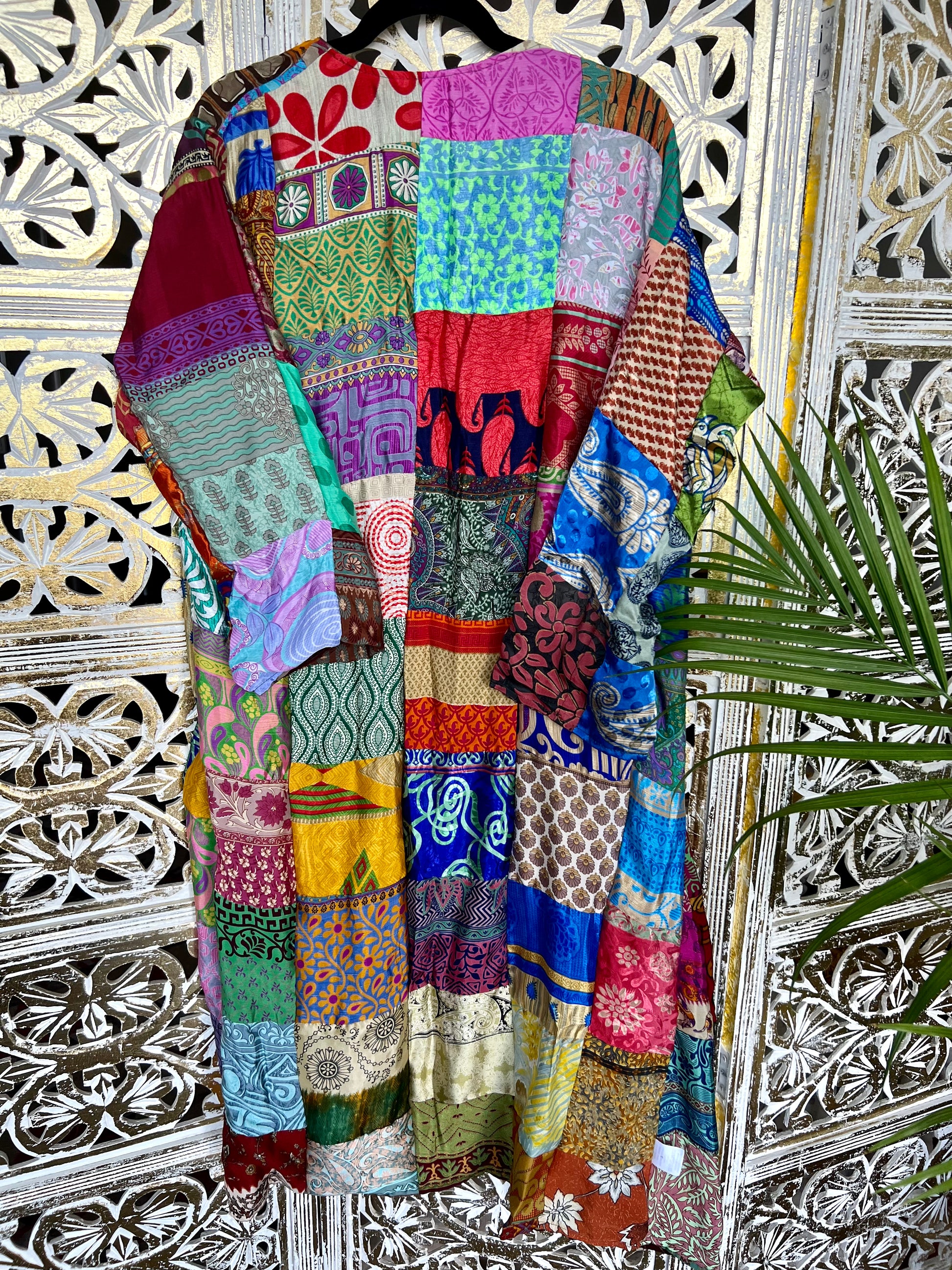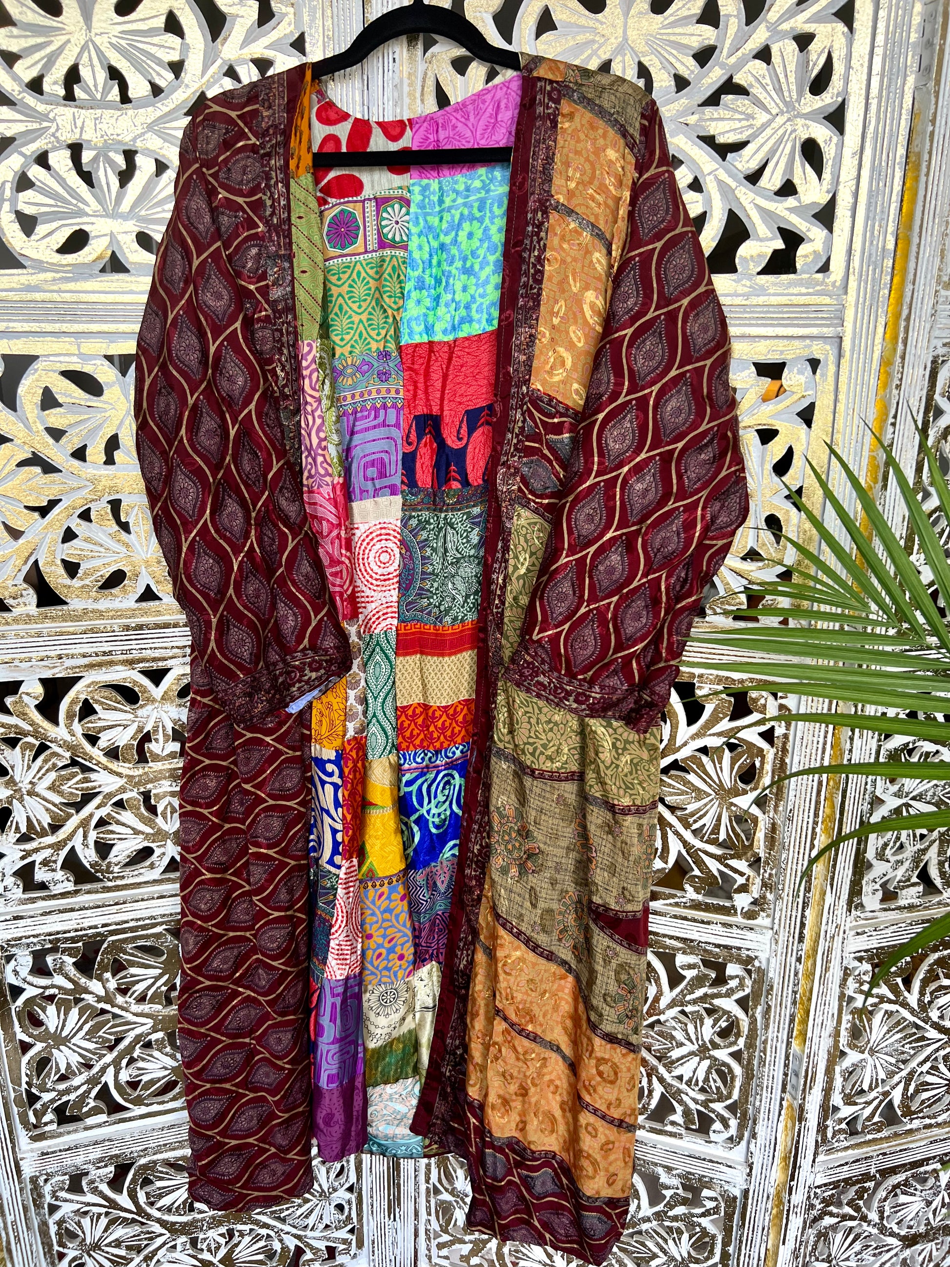 Silk Kimono (reversible) - Maroon/Gold & Patchwork